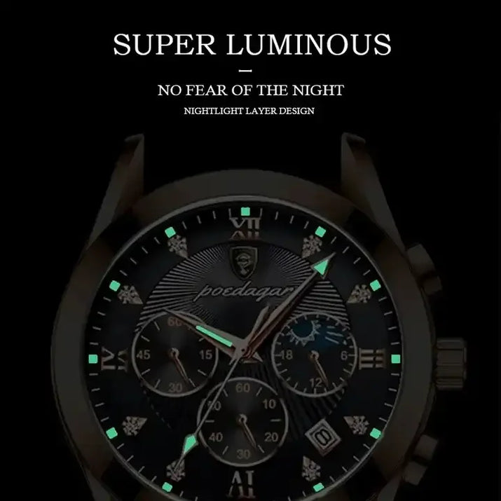 Combining impeccable craftsmanship with cutting-edge precision, this gold-tone chronograph watch is a statement of success — delivering flawless accuracy, enduring durability, and timeless sophistication in every detail.